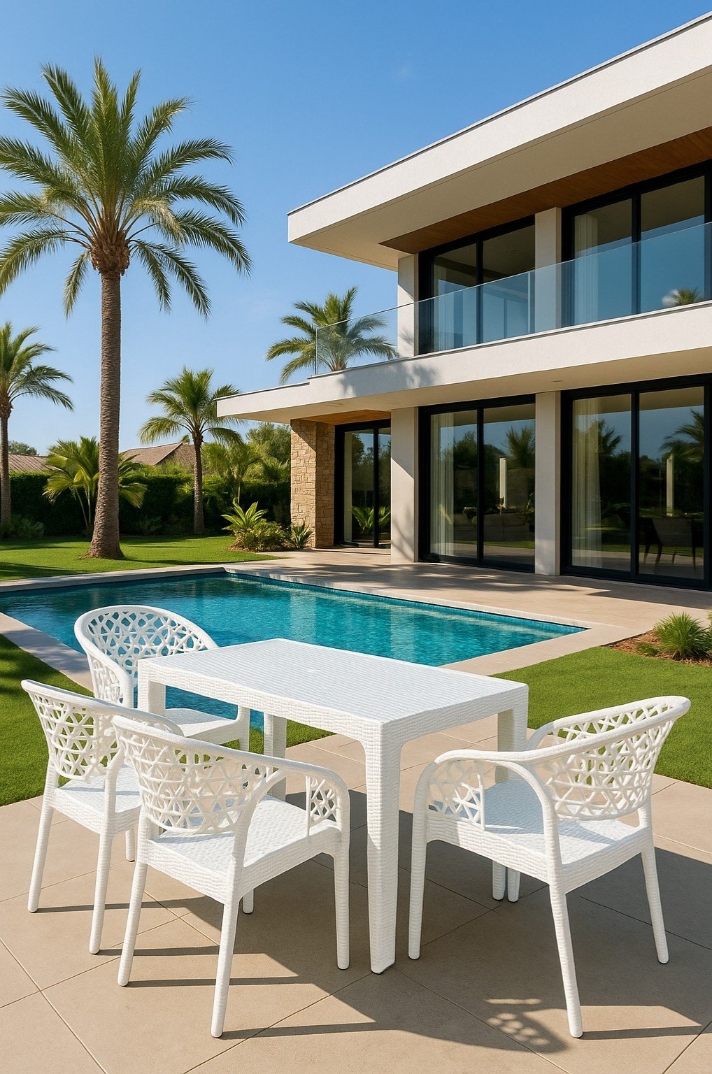 Güneşin, rüzgarın ve zamanın tadını bu zarif masa takımıyla çıkar.